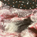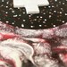 край круга неровный и текстурированный, с сочетанием красных, белых и серых оттенков, придающих ему несколько хаотичный и динамичный вид.