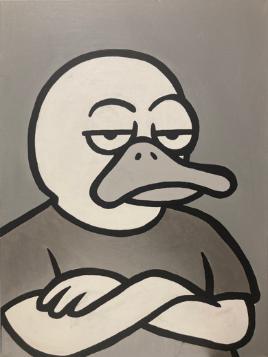 Нос персонажа выполнен в форме плоского клюва серого цвета.