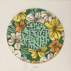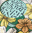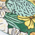 Всё изображение представляет собой единую непрерывную круглую композицию, заполняющую кадр. Отдельных переднего или заднего. Основными элементами изображения являются стилизованные цветы и листья. Цветы большие