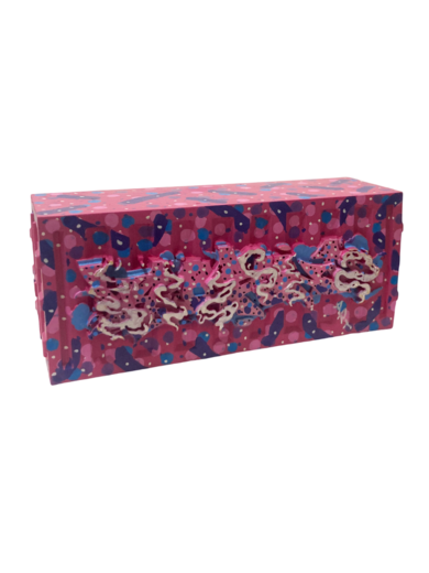 покрыта розовым фоном с различными узорами и текстурами.