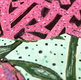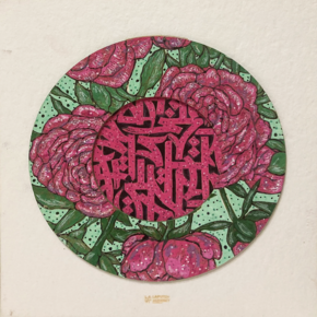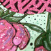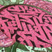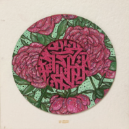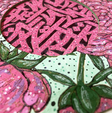 Центральным элементом изображения является большой стилизованный розовый цветок с несколькими слоями лепестков. Вокруг него расположены несколько более мелких розовых цветов, также с многослойными лепестками,