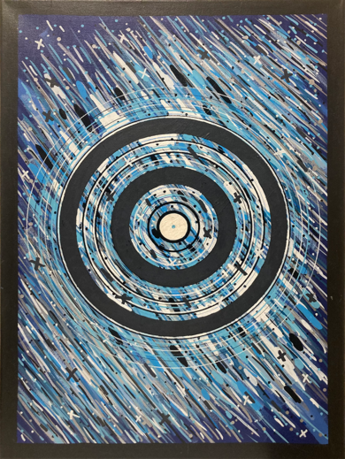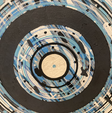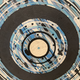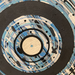 с использованием техник смешанных медиа. В центре находится большой круг, напоминающий мишень или цель.