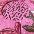 расположены вокруг центральной области, в которой находятся замысловатые, тёмные и несколько хаотичные буквы или символы. Буквы переплетены и, по‑видимому, образуют слово или фразу, хотя из‑за сложности дизайна это не сразу ясно.
