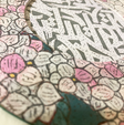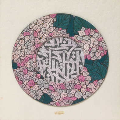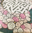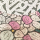 Главный объект на изображении – круговой дизайн, напоминающий стилизованный цветочный узор. Узор состоит из множества небольших, напоминающих лепестки форм в оттенках розового, белого и светло-серого, расположенных плотным, многослойным способом. Среди этих лепестков