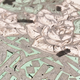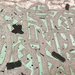 и серого, с некоторыми чёрными акцентами. Зелёные участки, кажется, изображают цветочные или листовые мотивы, тогда как серые участки содержат стилизованный текст.