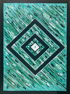 Фон полотна имеет бирюзовый оттенок. Поверх фона изображены