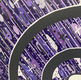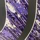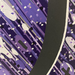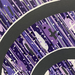 На изображении представлено абстрактное произведение искусства, выполненное в фиолетовых и черных тонах. Фон состоит из множества наклонных белых линий, создающих эффект движения или дождя. Поверх этого фона нанесены различные формы и точки в фиолетовых оттенках, создавая текстуру и глубину.